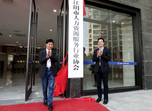 江陰市人民政府副市長(zhǎng)虞衛(wèi)才與無(wú)錫市人力資源服務(wù)行業(yè)協(xié)會(huì)會(huì)長(zhǎng)徐達(dá)增為江陰市人力資源服務(wù)行業(yè)協(xié)會(huì)揭牌